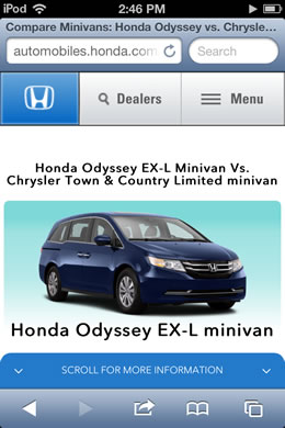 I developed the 2014 Honda Odyssey Conquest Page (Mobile Version) which went live in early 2014.