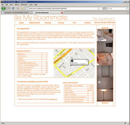 A personal website I setup back in December 2006 to find myself a roommate. And I was able to found my roommate in less than 2 weeks. Thanks to craigslist and...