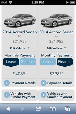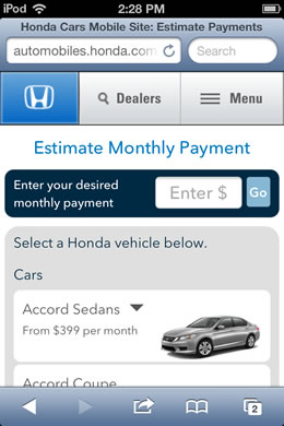 I coded the mobile version of the Honda Monthly Payment Estimator Finance Tools which just went live a few days ago on April 18th 2014.