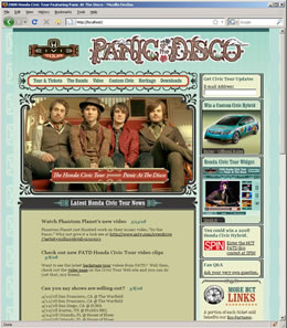 I was the main developer to build the redesigned 2008 Honda Civic Tour website. The main band for Civic Tour 2008 was Panic At The Disco.