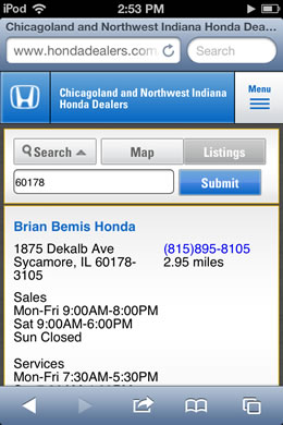 I was in charged of coding the mobile version of the Honda Dealers Association website which was launched in 2013.