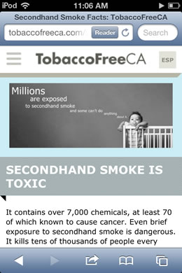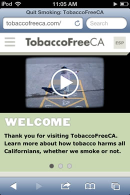 I coded the Mobile Spanish version and the English version of the TobaccoFreeCA website in late 2013. It was launched at the end of 2013.