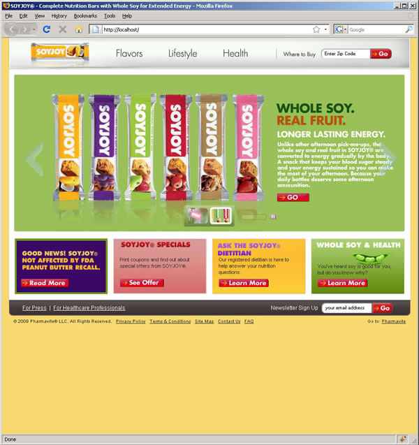 I was the main developer for the 2009 redesigned Soyjoy website. The site went live at around Christmas 2008 just in time for the 2009 New Year.